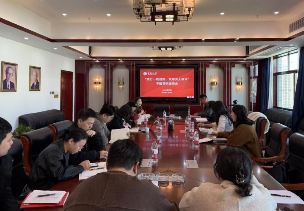 为高质量实施“新时代立德树人工程”,推动辅导员深入践行“一线规则”相关要求,11月28日下午,中南大学党委学生工作部就业指导中心主任徐赞一行来到土木工程学院,开展“践行一线规则,筑牢育人根本”专题调研。学院党委副书记纪晓飞及全体辅导员参加。