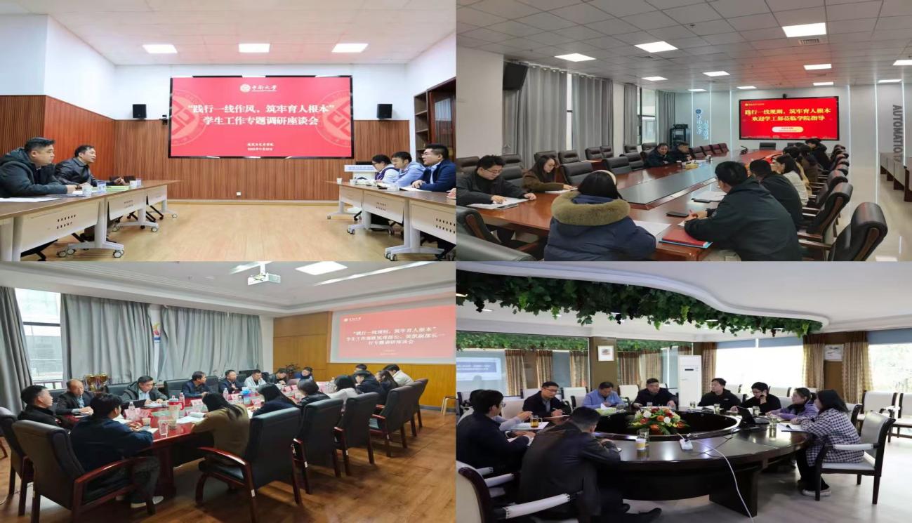 为更好落实立德树人根本任务,推动辅导员践行“一线规则”相关要求,2025年11月17日-27日,中南大学学生工作部副部长黄凯一行赴湘雅医院、自动化学院、资源加工与生物工程学院、建筑与艺术学院、计算机学院开展“践行一线规则,筑牢育人根本”专项督查。各二级学院学生工作负责人及全体辅导员参加调研会。