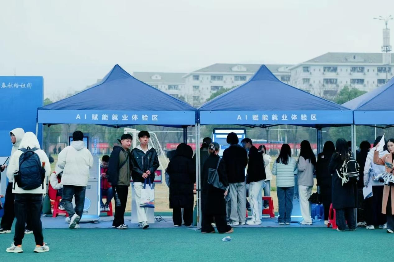 现场打造的AI赋能就业体验区,以科技为笔绘就智慧就业新图景。就业服务一体机实时滚动最新就业资讯与政策,就业赋能、生涯探索一体机为学子开展专业职业生涯测评并提供个性化规划建议,简历打印一体机依托AI大模型实现简历快速诊断与智能优化,让科技成为求职路上的“硬核助力”。线下同步设置的“就业指导服务站”,提供免费简历打印、职业妆造、政策解读、签约指导等一站式服务,专业老师一对一精准答疑,打通就业服务 “最后一公里”。
