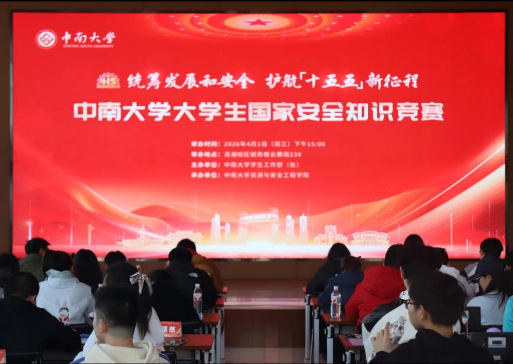 为深入贯彻落实总体国家安全观,普及国家安全知识,增强大学生国家安全意识,营造 “国家安全、人人有责”的浓厚校园氛围,4月1日下午,中南大学大学生国家安全知识竞赛在潇湘校区毓秀楼云麓阁238顺利举行。活动由中南大学学生工作部主办、资源与安全工程学院承办,全校各学院参赛代表队及师生观赛代表现场参与活动。