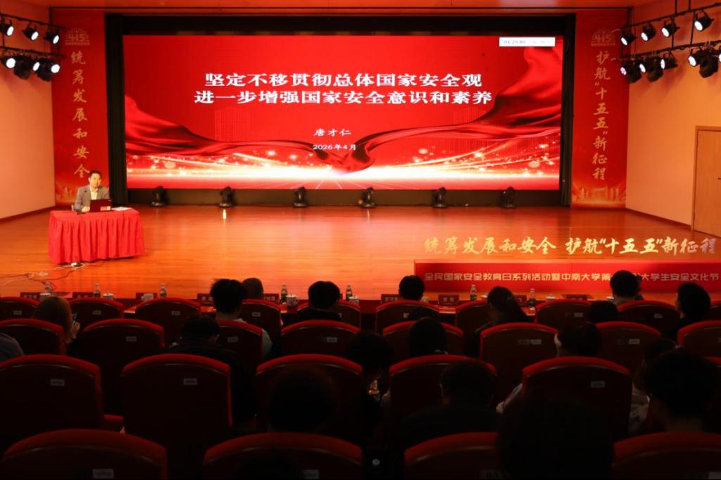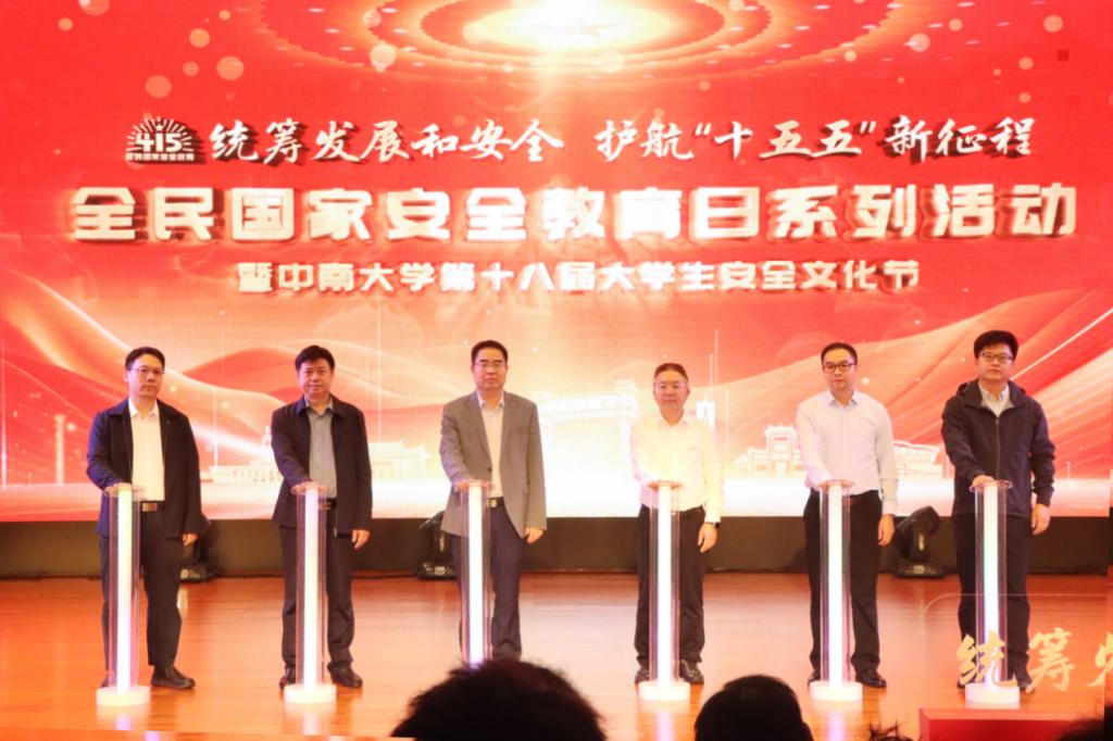 4月10日,在第十一个全民国家安全教育日来临之际,学校联合中共湖南省委国家安全委员会办公室、中共湖南湘江新区工作委员会国家安全委员会,共同举办全民国家安全教育进校园系列活动暨中南大学第十八届大学生安全文化节启动仪式。本次活动以“统筹发展和安全,护航‘十五五’新征程”为主题,旨在深入贯彻总体国家安全观,推动大安全理念广泛普及、深入人心。学工部部长欧旭理、资安院党委书记秦进、保卫副部长曹斌、团委副书记李飞以及湖南省委办公厅、长沙市委办公室、湖南湘江新区党政综合部相关领导出席,全校师生代表400余人参加。