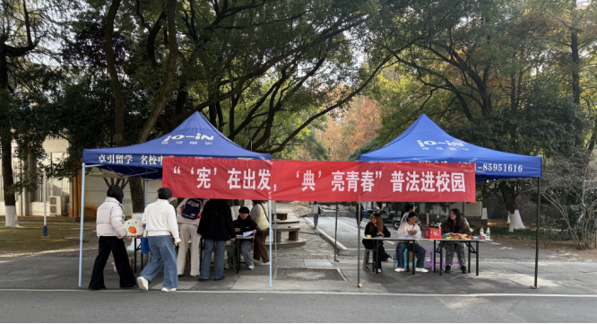 为迎接第十二个国家宪法日,深入推进“八五”普法规划落地,切实提升在校师生法治素养,2025年12月6日下午2时,中南大学公共管理学院朋辈心理互助会联合法学院朋辈心理互助会,于天心校区开展“‘宪’在出发,‘典’亮青春”普法进校园活动,为参与活动的全体师生带来了一场兼具趣味性与实用性的法治文化普及课堂。