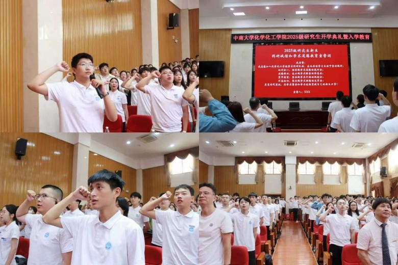 9月14日上午,化学化工学院2025级研究生新生开学典礼在潇湘校区化学楼133报告厅隆重举行。学院党委书记刘有才、副院长宋相志,各系主任、研究生培养办老师、学工办老师及全体新生参加典礼。典礼由学院党委副书记滕晓雯主持。