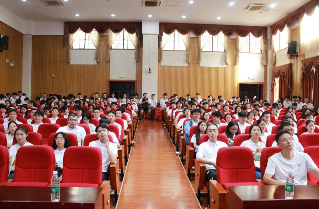 在学术道德宣誓环节,全体新生在领誓人的带领下,举起右拳庄严宣誓。铿锵有力的誓言在报告厅回荡,展现了新生坚守学术诚信的决心。