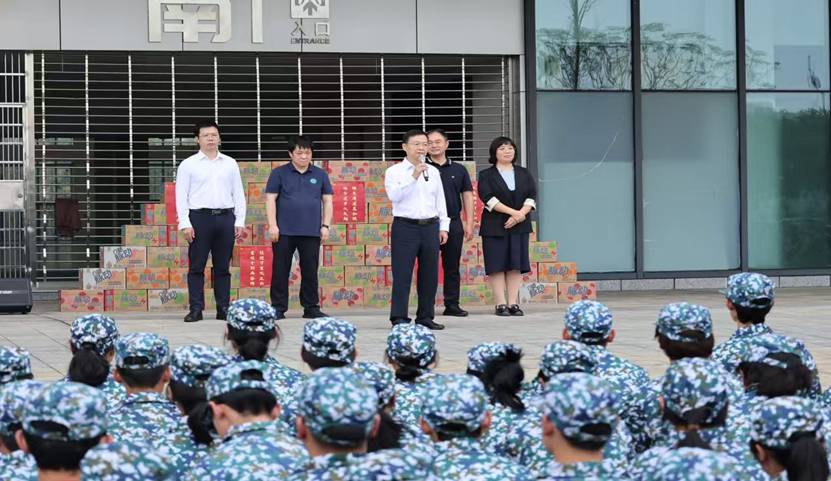 栾花灿金志不老,秋叶润土护新苗。10月17日下午,土木工程学院党委书记李磊、副院长易亮、张升,党委副书记纪晓飞、副院长雷明锋等共同莅临训练现场,慰问2025级轨道交通安全大类全体参训学生、军训教官和参训干部。
