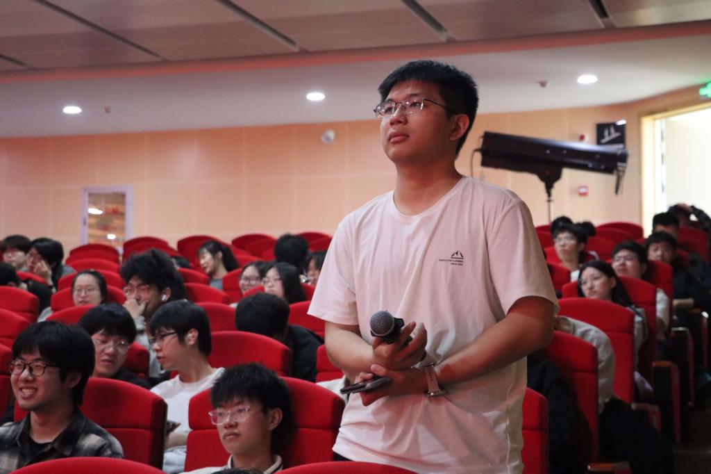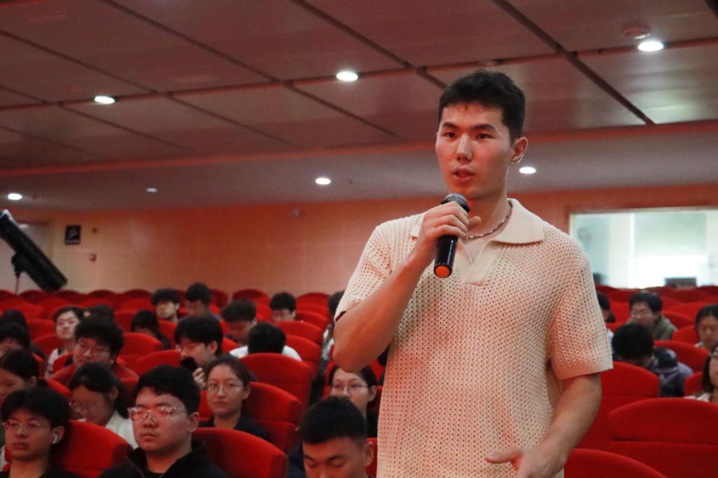 互动交流环节,同学们踊跃发言、积极提问,围绕职业发展规划、工程技术攻关、基层成长成才等话题与郭吉平校友深入交流。郭吉平结合自身经历逐一细致解答,鼓励大家坚定理想、脚踏实地,主动到国家和人民最需要的地方经风雨、见世面、长才干,在实践磨砺中找准人生航向、实现人生价值。