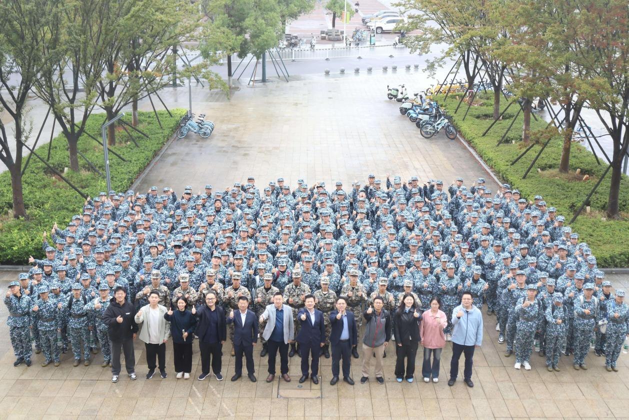 随后,院领导向新生代表和全体教官发放精心准备的慰问品。这一暖心举措,既体现了学院对军训工作的高度重视,也传递出对参训学生和教官团队的深切关怀。随着慰问活动的圆满结束,参训学子纷纷表示,学院领导老师们的关怀与鼓励让他们倍感温暖,也进一步坚定了自己锤炼坚韧意志和遵守严明纪律的决心。