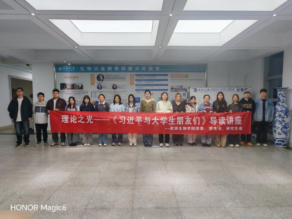 4月15日下午,资源加工与生物工程学院在生物楼301举办“理论之光——《习近平与大学生朋友们》导读讲座”。活动由学院团委、学生会、研究生会联合举办,学院学生会主席团成员廖凯主讲,学院广大青年学生到场学习。