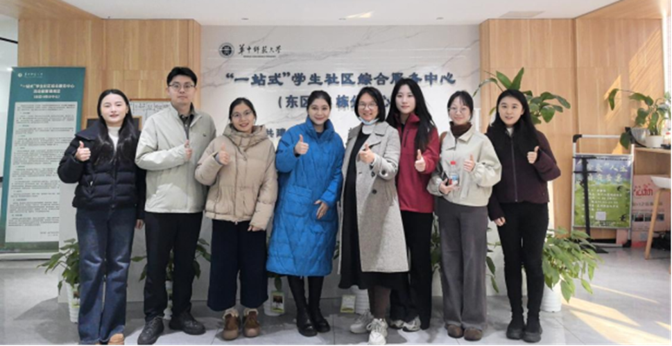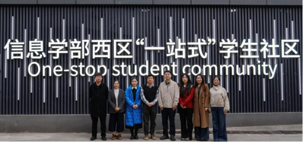 学习交流团首站到访华中科技大学紫菘学生活动中心,在华科党委学生工作部闵迪老师的引导下,重点了解一站式学生社区“党建引领+学业帮扶+文化浸润”三位一体的建设模式、“爱华导”AI智能服务平台的应用成效。交流团老师表示极具启发,收获颇丰,华科将资源整合与数字赋能深度融合的育人思路,为我院优化学生工作提供了宝贵借鉴。