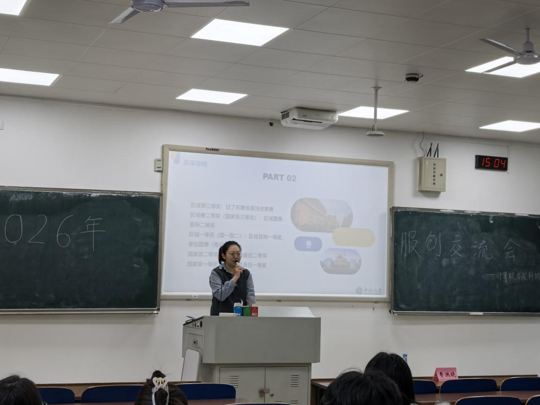 2026年3月18日15:00,计算机学院大学生科学技术协会于A座108举办了计算机学院2026年服创交流会。本次活动旨在激发同学们的参赛热情,为大家答疑解惑,同时为参赛学子搭建起广阔的交流共进平台。