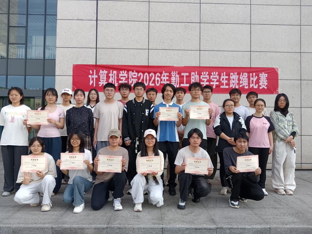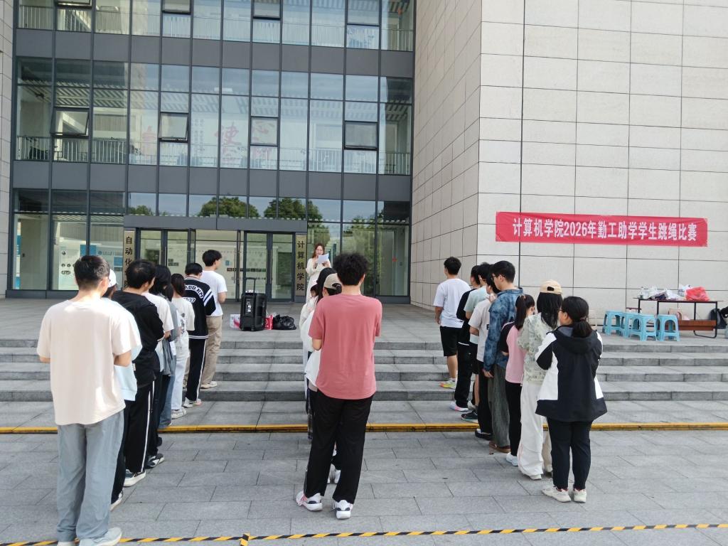 为丰富学生的课余文化生活,增强团队凝聚力与归属感,展现计算机学子积极向上的精神风貌,计算机学院于勤助中心于4月19日下午两点在信息楼门前举办了2026年勤工助学学生跳绳比赛。学院勤助中心全体成员参与本次活动。