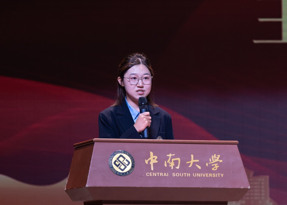 王怡宁同学作为新生代表上台发言。她对即将展开的医学旅程充满憧憬,表示要传承好湘雅“公勇勤慎,诚爱谦廉”的精神与严谨务实的学风,争做顺应时代、引领未来的医学人才。她呼吁同学们怀揣“爱我湘雅”的赤诚,不负韶华、不负期许,用奋斗书写属于自己的青春华章,成长为无愧于“湘雅”之名的新时代医学青年。