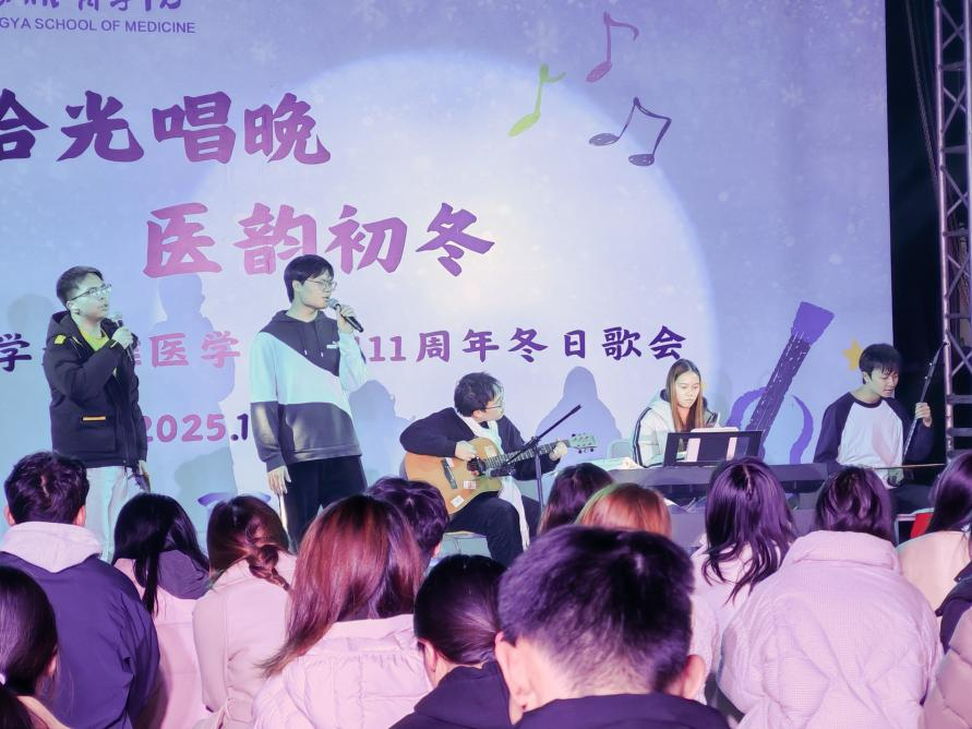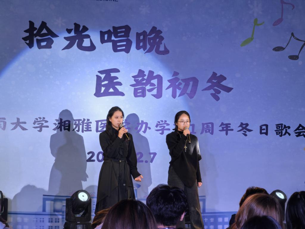 2025年12月7日晚,中南大学杏林校区福庆楼前坪,灯火与歌声交织,笑语与星光共舞。“拾光唱晚,医韵初冬”冬日歌会在此温情上演,以音乐之名为湘雅医学办学111周年献上诚挚祝福。