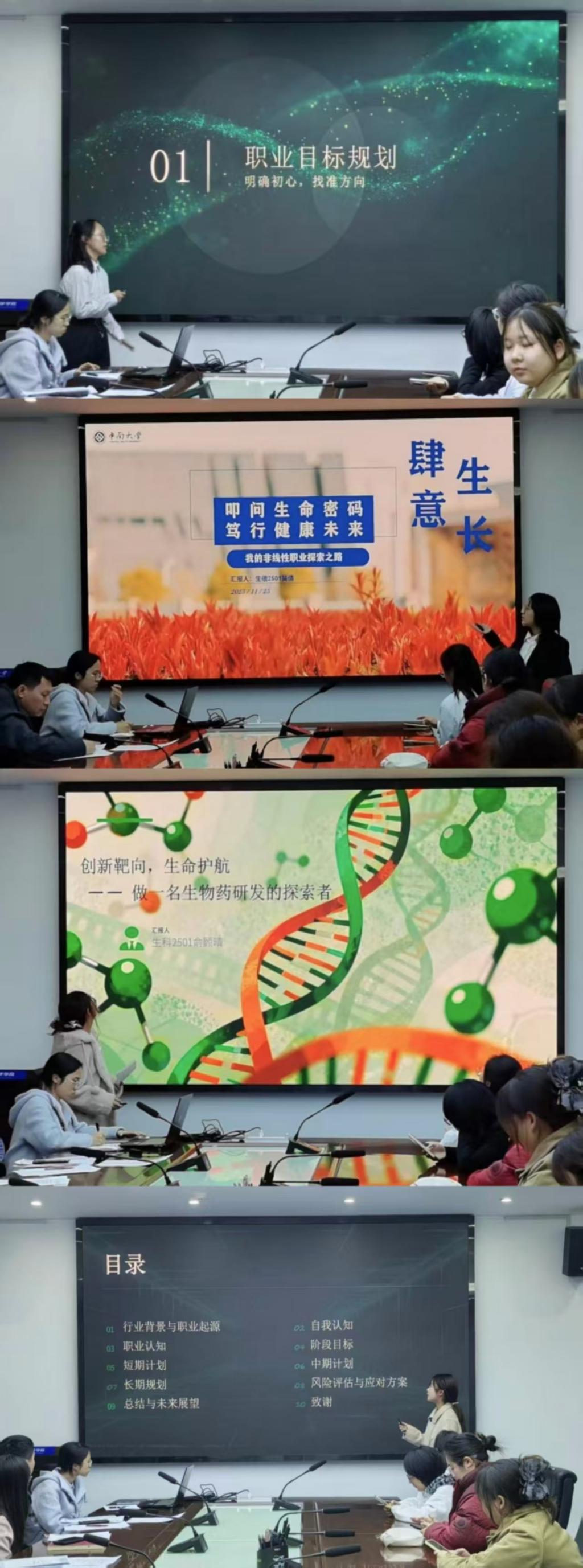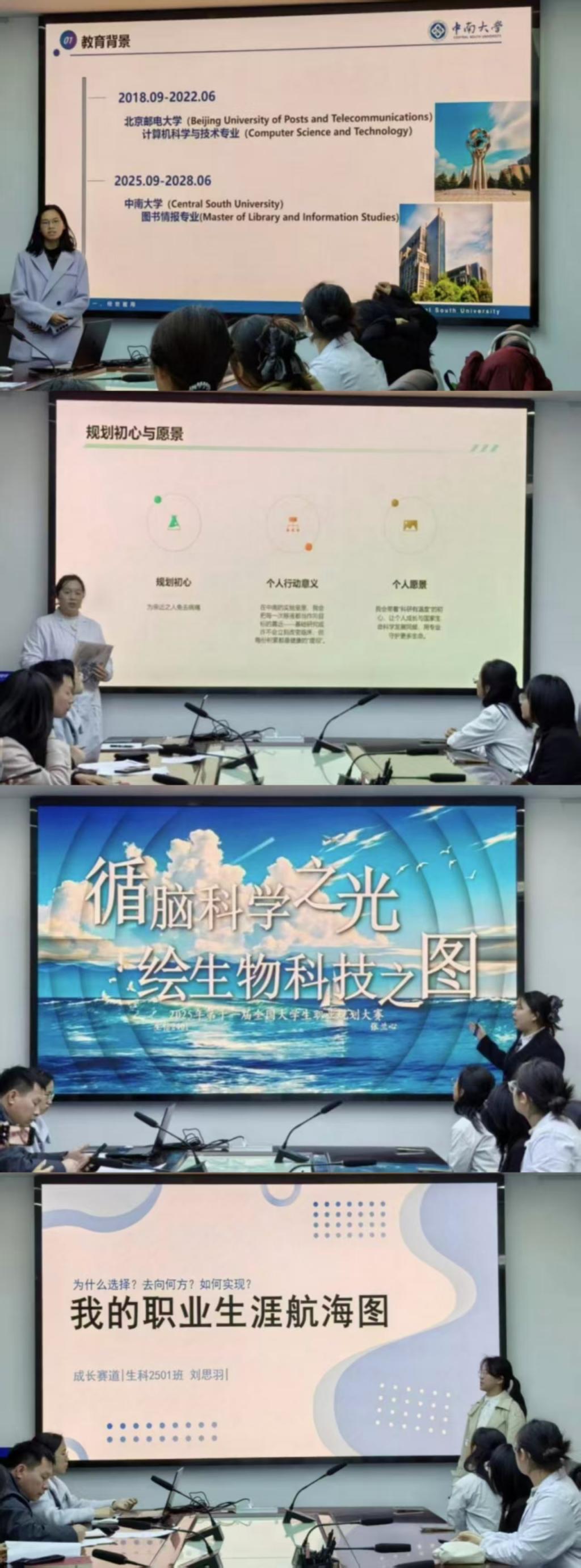 为贯彻落实党中央、国务院关于做好高校毕业生就业工作的决策部署,引导大学生科学合理规划学业与职业发展,提升就业竞争力,促进高质量充分就业。2025年11月24日19点,中南大学生命科学学院第二届大学生职业规划大赛院赛于生命科学学院D626会议室顺利举办。本次比赛由生命科学学院学生工作办公室主任李跃辉、院团委书记谢彬、兼职辅导员王思佳以及院学生会主席团成员担任评委。本次职业规划大赛涵盖成长赛道和就业赛道,参赛选手覆盖本科生、研究生。