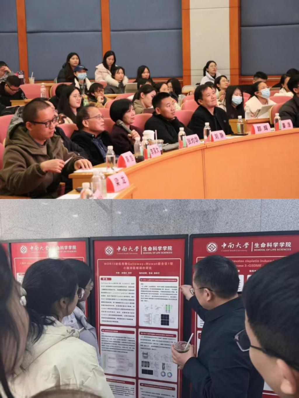 在墙报展示与交流环节,二十余幅设计精美、内容丰富的学术墙报整齐陈列,吸引了大量师生驻足流连。短暂的午休时间,老师和同学们围绕在墙报前展开热烈地讨论,许多初步的合作意向与创新灵感在此刻悄然萌芽。