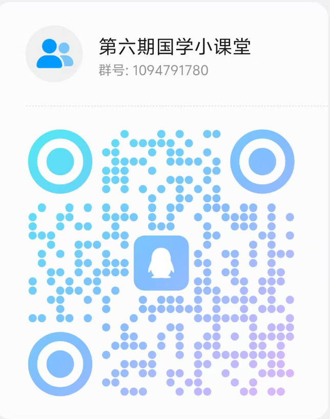 采用个人自愿报名形式。有意向的同学请扫描下方二维码填写报名登记表,并加入国学小课堂专属QQ群(群号:1094791780),报名截至2026年4月5日18:00,课程后续安排、重要通知将在群内实时同步。