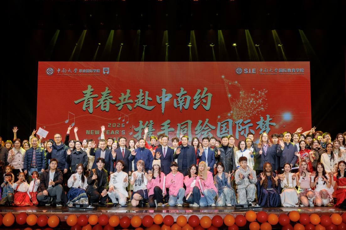 2026年1月10日晚19:00,邓迪国际学院与国际教育学院在麓南校区礼堂联合举办“青春共赴中南约,携手同绘国际梦”2026新年晚会,校领导何军、黎志宏出席活动,长沙市公安局出入境管理支队外国人管理大队,学校党委统战部、校团委、党委教师工作部、发展规划与学科建设处、国际合作与交流处、后勤保障部、数学与统计学院、交通运输工程学院、计算机学院、机电工程学院、邓迪国际学院、国际教育学院相关负责人到场观礼,超1000名中外师生及学生家长参加晚会。
